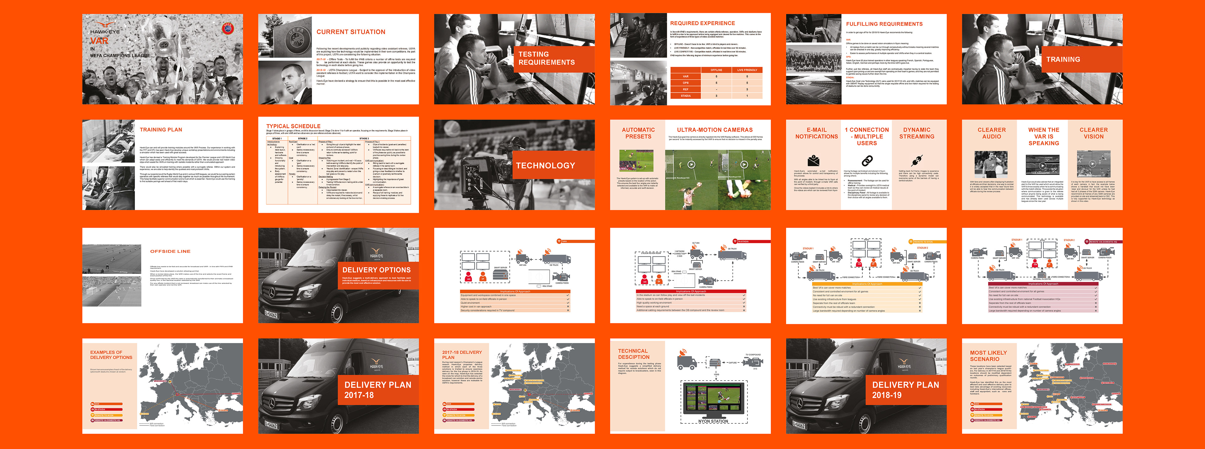 This layout became the template that won Hawk-Eye the tenders for at excluslmost every VAR contract around the world, as see here for the UEFA Champions League, but not excluding the FIFA World Cup, Premier League, Serie A, La Liga, Chinese Super League, CONMEBOL Cup and many more. It conveys complex technical information, in a simple easy-to-read design. It's use of hierarchy, both in order of pages and within the page itself, conveys the key information in a modular "top-to-bottom level" layout so both an executive or a technician could derive the required information. (Role: Publication Designer/ Graphic Designer)