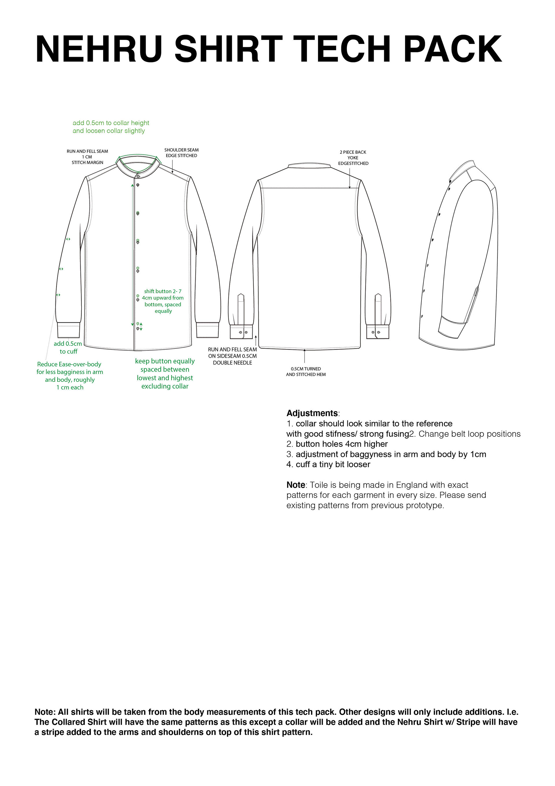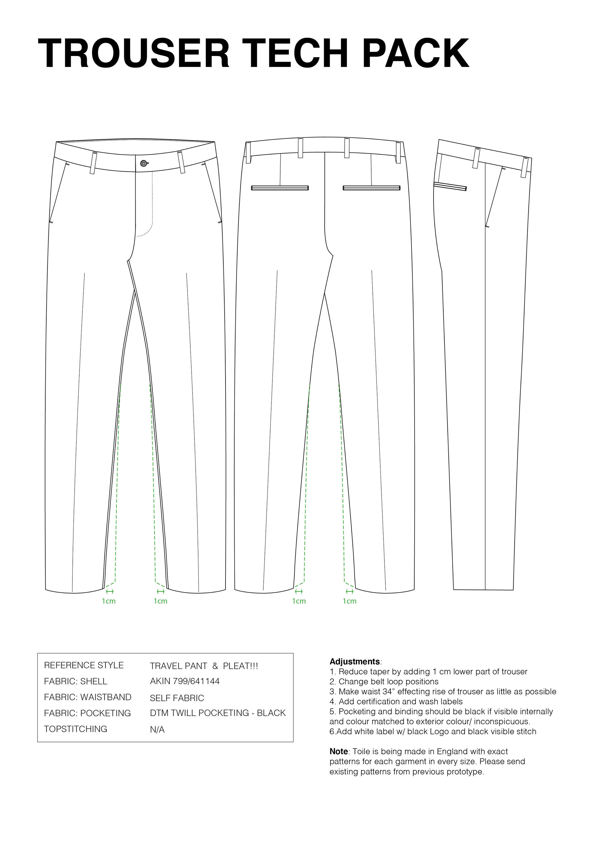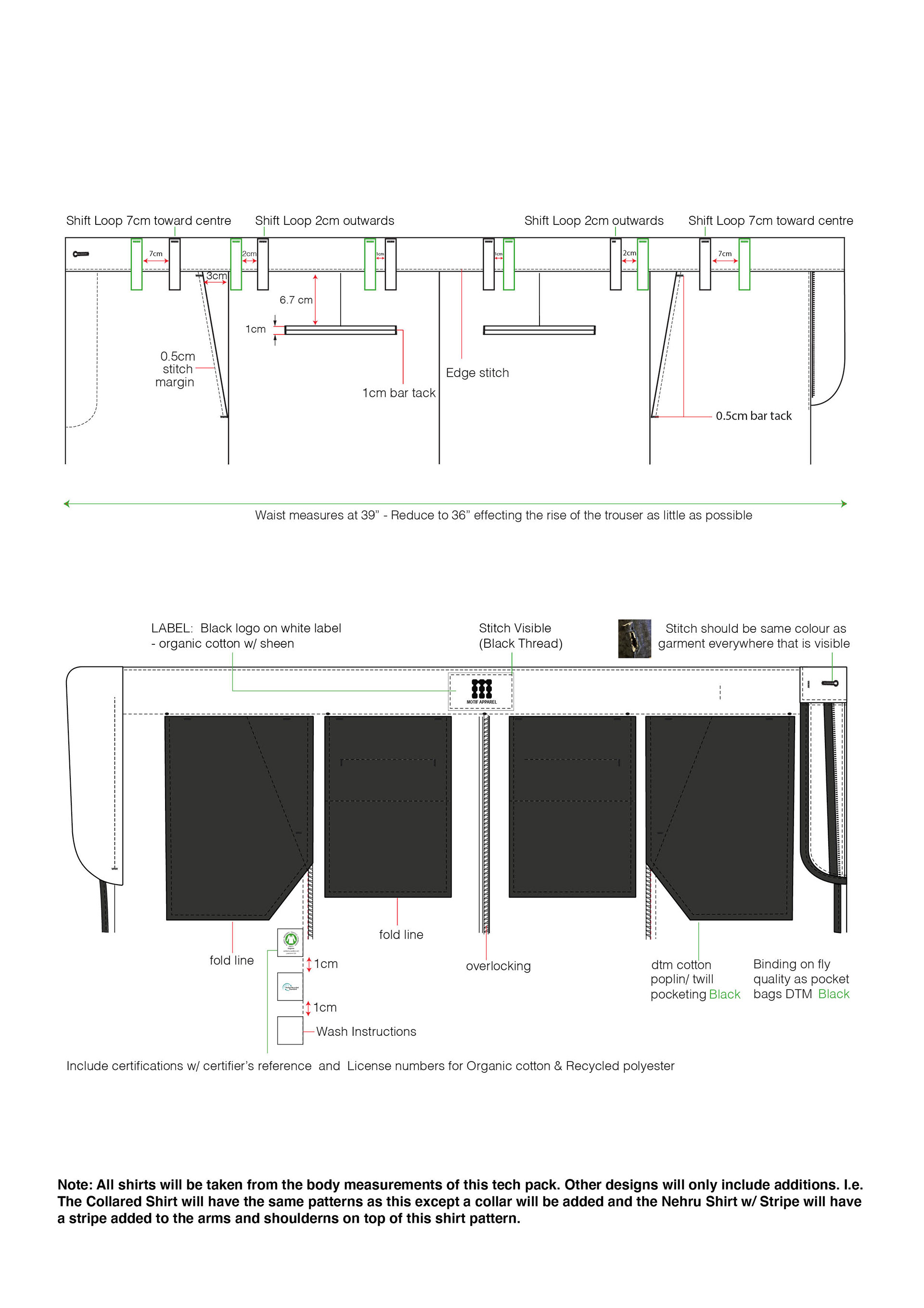 Technical Drawings and overview documents for Motif Apparel.