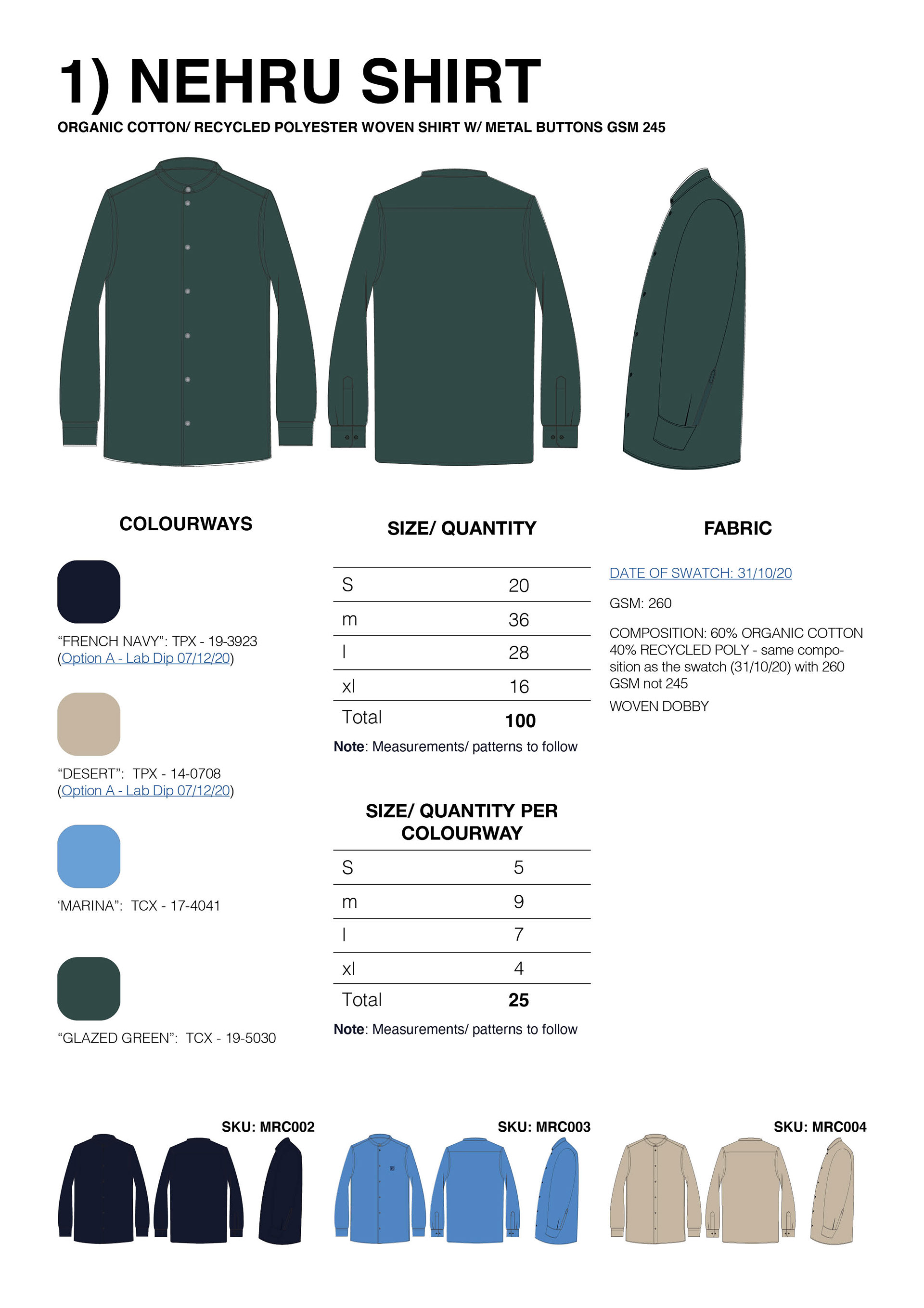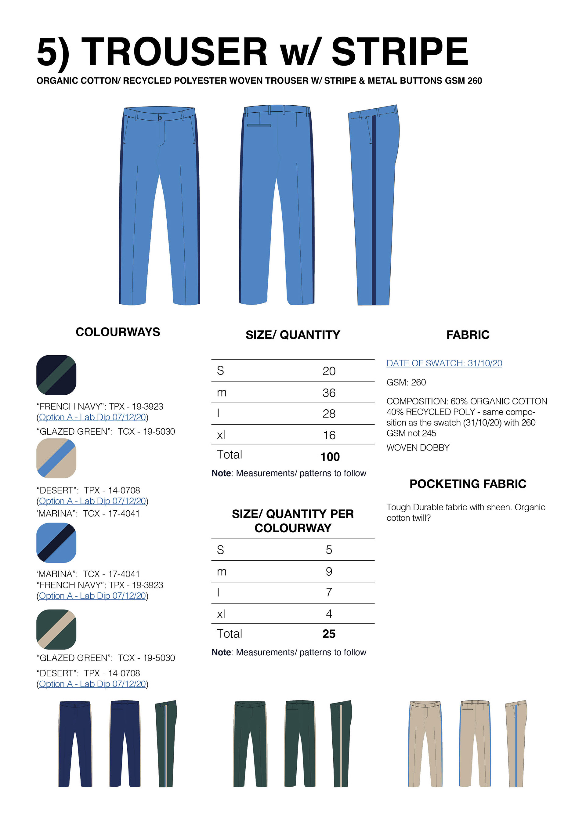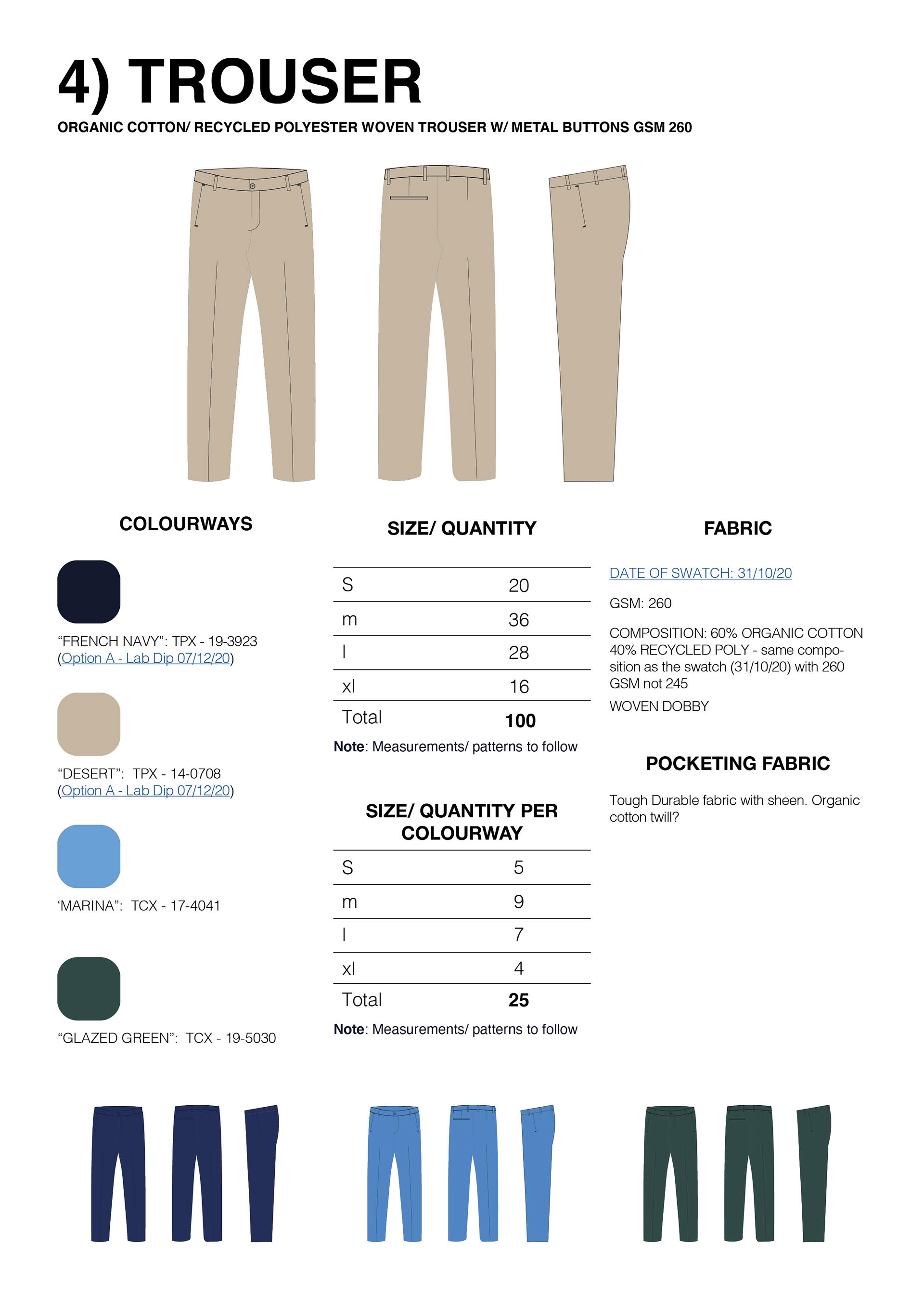 Technical Drawings and overview documents for Motif Apparel.